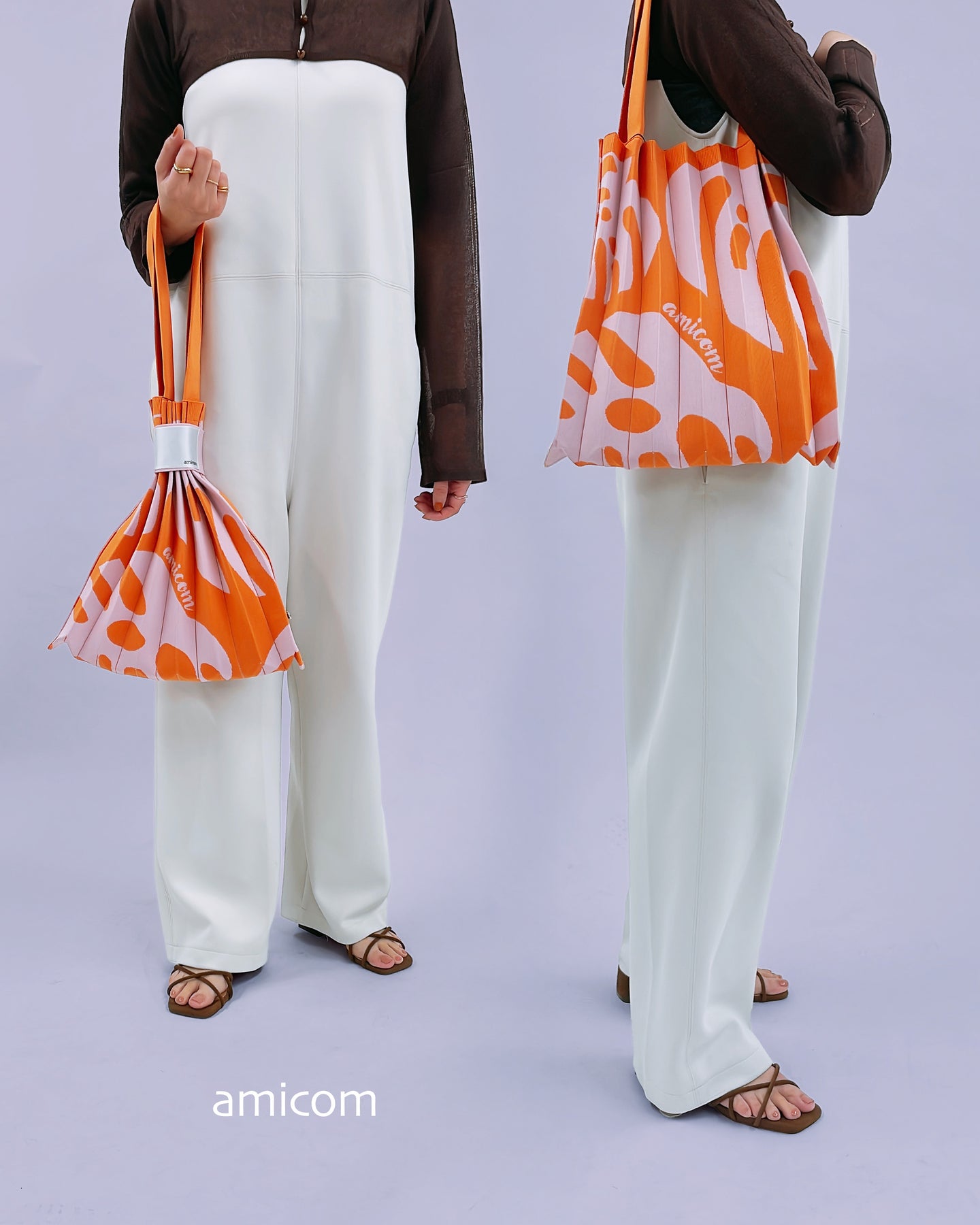 MONSTERA PLEATS KNIT BAG - ORANGE